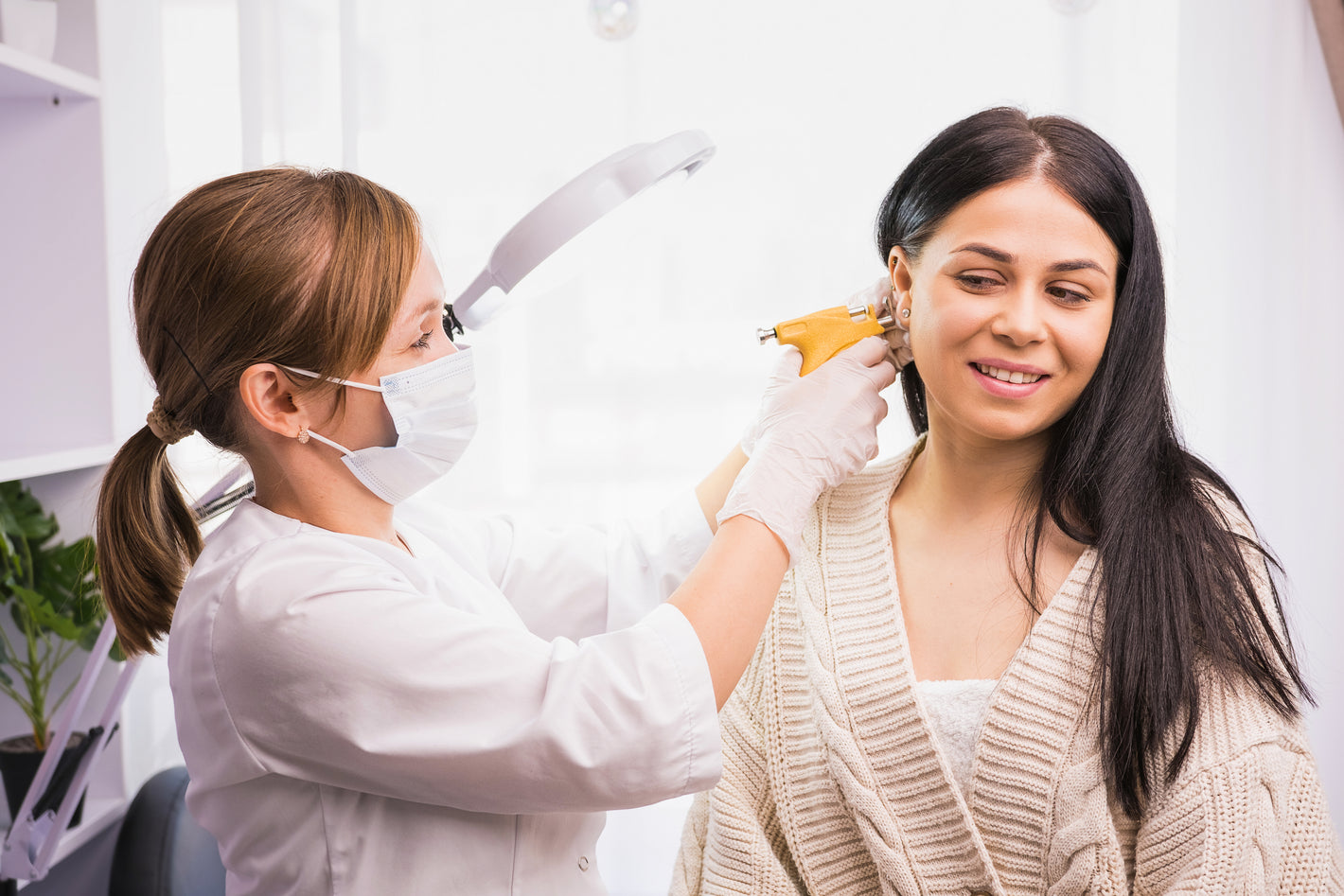 피어싱 부위가 오염되어 덧나는 일이 없도록 의사 선생님이 시술합니다.